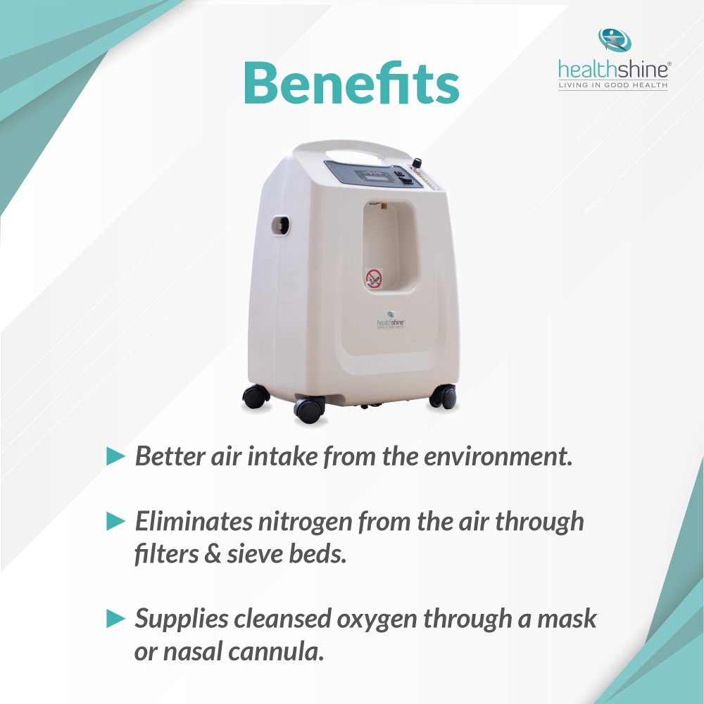 Healthshine’s Oxygen Concentrator is a reliable medical device designed to deliver a continuous supply of high-purity oxygen for patients with respiratory conditions such as COPD, asthma, pneumonia, post-COVID recovery, and other breathing disorders. By drawing in ambient air and filtering out nitrogen, it provides safe, concentrated oxygen without the need for traditional oxygen cylinders.